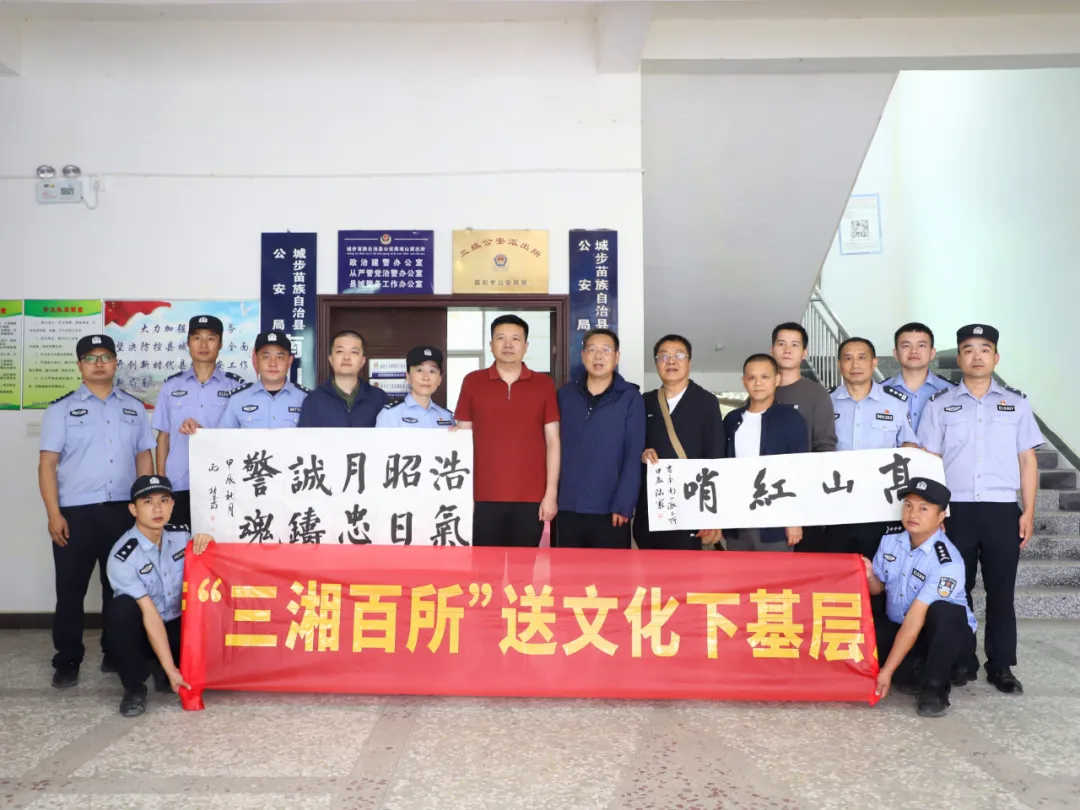 为深入贯彻落实湖南省公安厅党委“将文化作品送到‘最偏远、最艰苦’的派出所”的指示精神,9月5日,由省厅政治部宣传处四级调研员何勇、宣传处科长陈寰带队,省政法摄影家协会主席饶立明、中国书法家协会会员盛健霖、省青年书法家协会副秘书长欧阳快乐等艺术家一行赴体育betvictro伟德客服公安局开展“三湘百所”送文化下基层活动,为基层民辅警送上了一场饱含墨香的书法文化盛宴。副县长、县公安局长肖勇,局党委副书记、政委唐洪斌,党委委员、政工室主任陈文光,邵阳市公安局政治部相关负责同志参加活动。