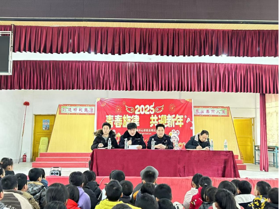 随着春回大地,万物复苏,我们迎来了新的学期。为了帮助学生迅速融入校园生活,激发他们的学习热情,引导他们树立正确的价值观,并增强班级凝聚力和集体荣誉感,我校在春季学期伊始进一步加强了校园安全教育,旨在提升师生的安全意识和自我防护能力,将安全教育融入到学生的日常活动中。2025年2月20日上午,我校特别邀请了法治副校长、五团镇派出所所长毛智炜以及五团镇派出所的欧阳警官,为全校学生带来了“春季开学法治安全教育第一课”。