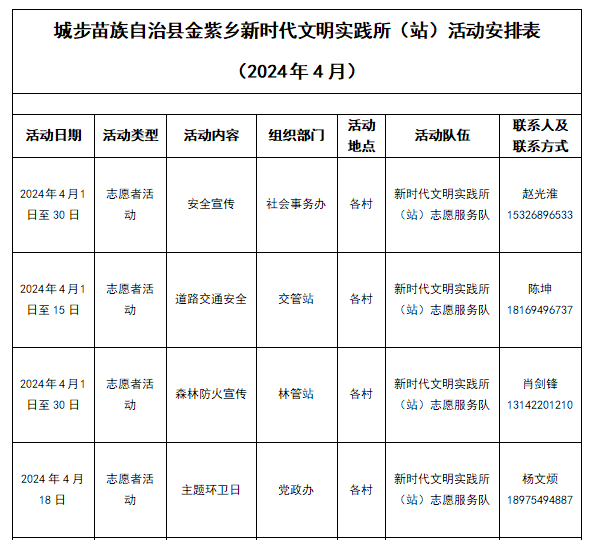 体育betvictro伟德客服金紫乡新时代文明实践所(站)活动安排表(2024年4月)