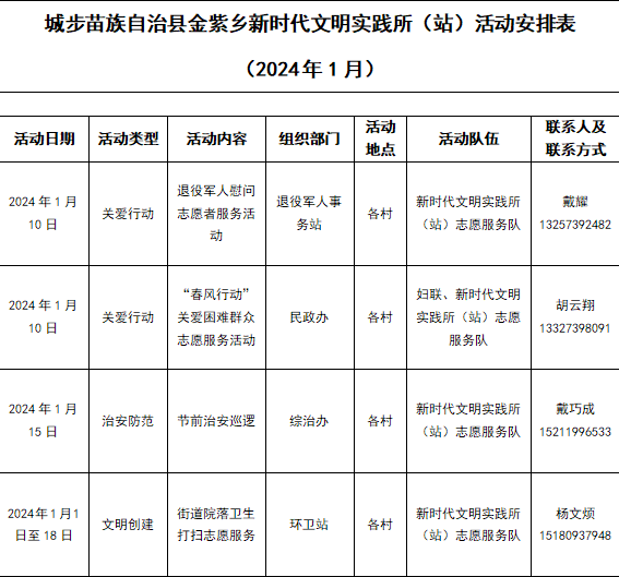 体育betvictro伟德客服金紫乡新时代文明实践所(站)活动安排表(2024年1月)