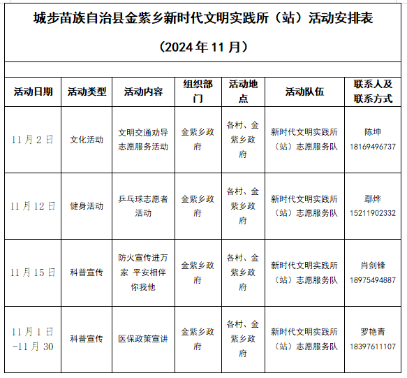体育betvictro伟德客服金紫乡新时代文明实践所(站)活动安排表(2024年11月)