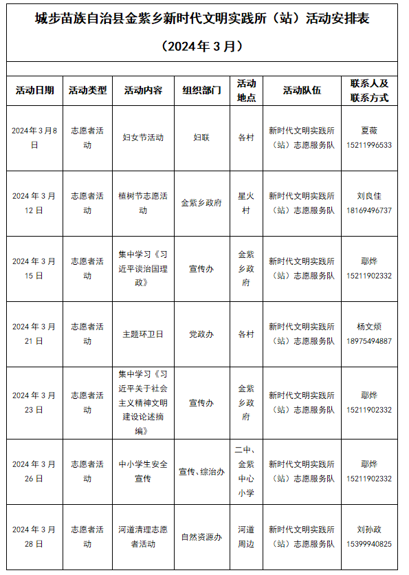 体育betvictro伟德客服金紫乡新时代文明实践所(站)活动安排表(2024年3月)