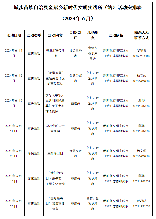 体育betvictro伟德客服金紫乡新时代文明实践所(站)活动安排表(2024年6月)