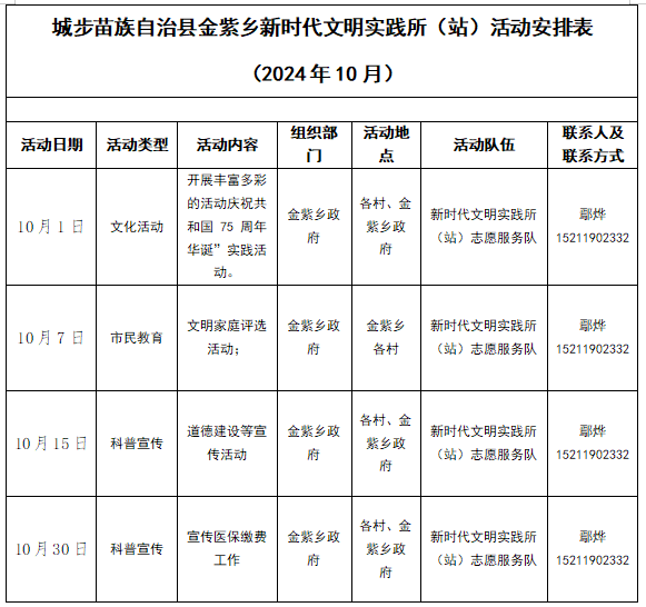 体育betvictro伟德客服金紫乡新时代文明实践所(站)活动安排表(2024年10月)