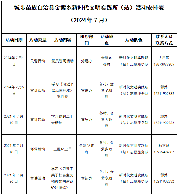 体育betvictro伟德客服金紫乡新时代文明实践所(站)活动安排表(2024年7月)