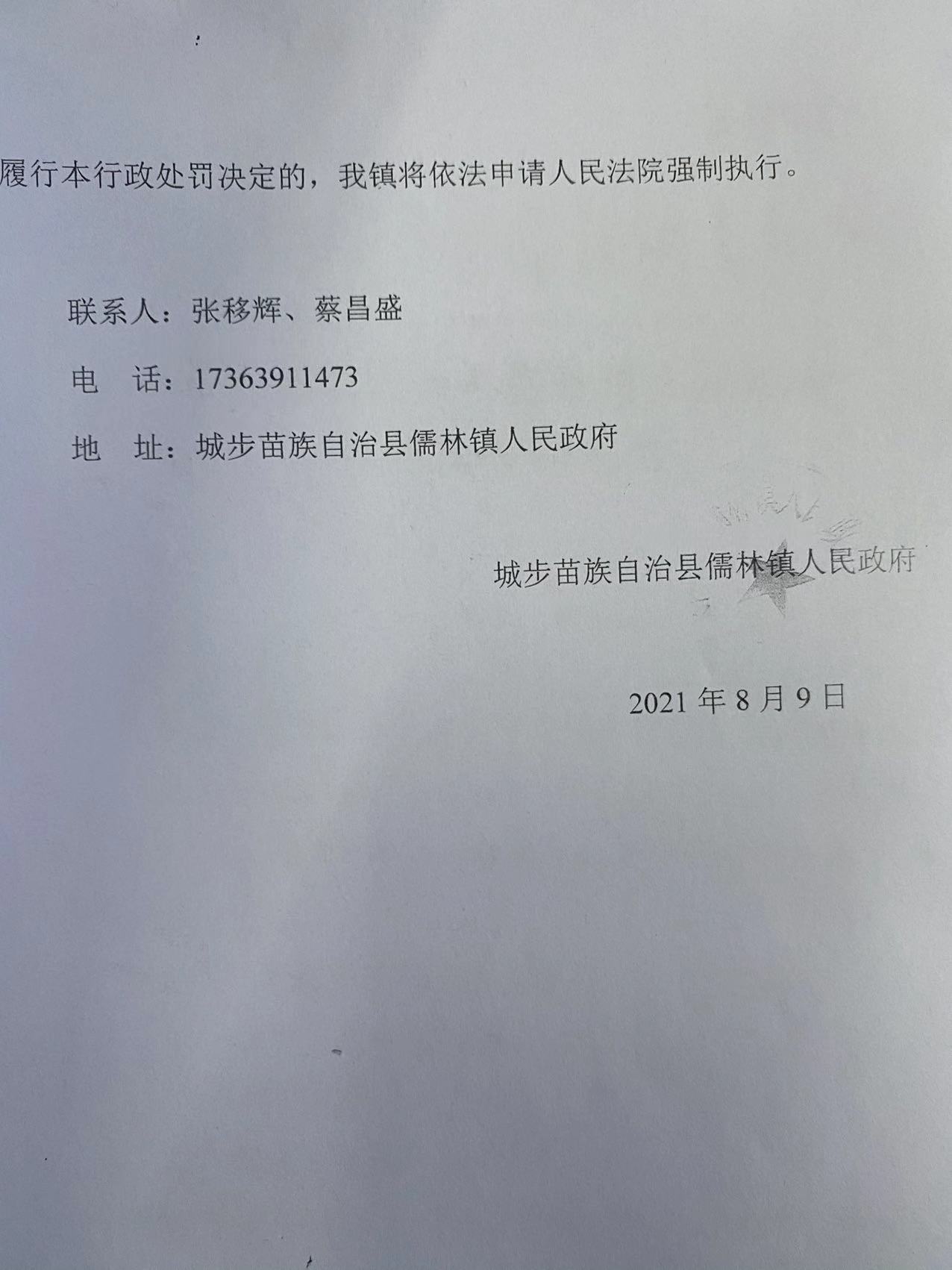 体育betvictro伟德客服儒林镇人民政府行政处罚决定书