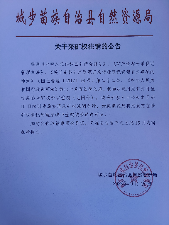 体育betvictro伟德客服自然资源局 关于采矿权注销的公告