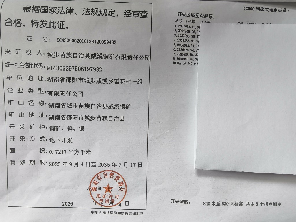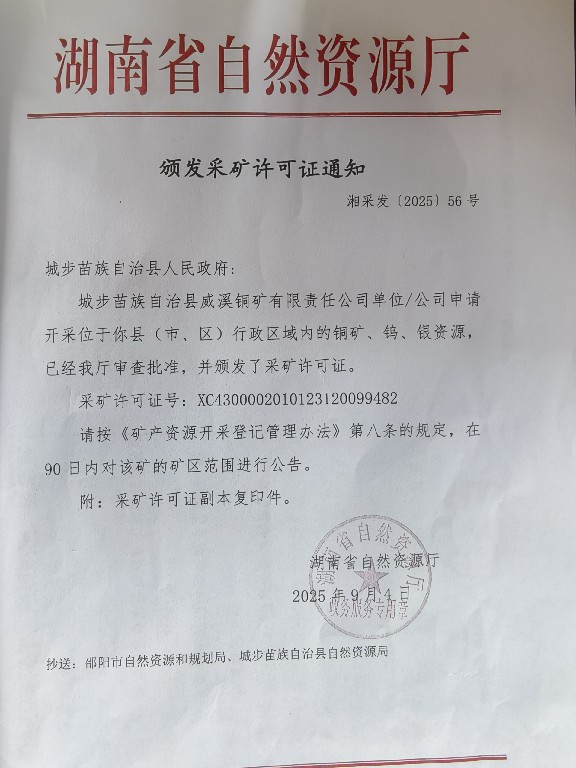 湖南省自然资源厅颁发采矿许可证通知 湘采发[2025]56号