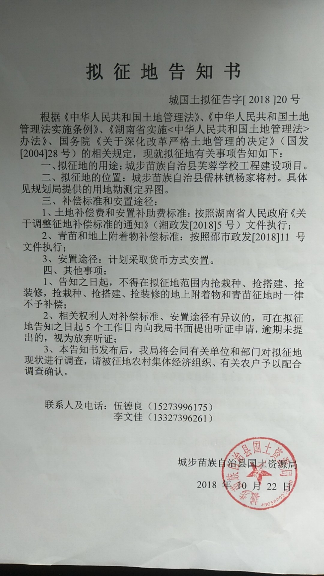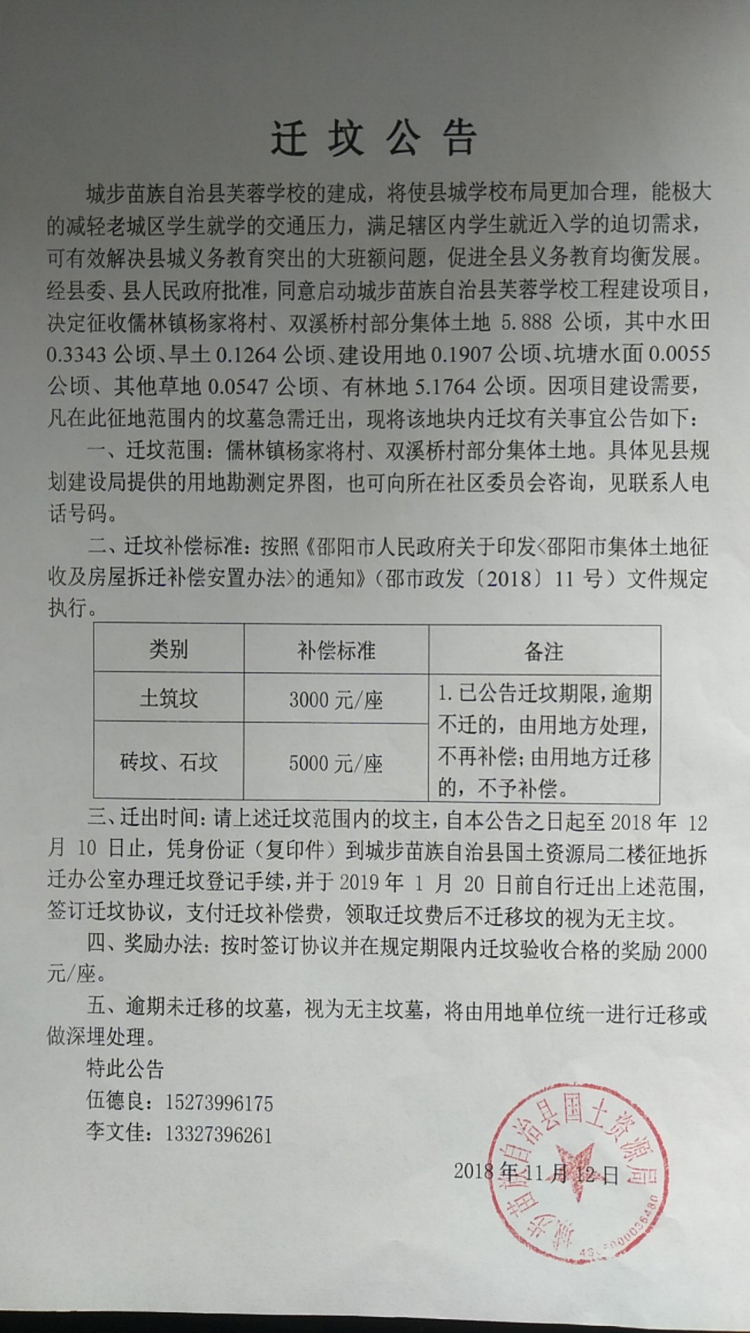 芙蓉学校建设项目拟征地告知书和项目迁坟公告