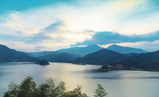 2.白云湖。白云湖湖面9.5平方公里,平均水深80余米,总蓄水量3.6亿平方米,水源来自高山峡谷,水质清纯,无污染,五座花岛点缀湖中,形成五彩缤纷的自然景观,无数的峡谷水巷绵延18公里,环湖为原始次森林带,古藤虬蔓,林木苍劲,乘舟穿行,碧波倒影,水天一色,鱼跃鹰翔,渔歌互答,似置身千回百转的画廊之中,其乐无穷。白毛坪镇歌舞村、胜利村、蜡屋村、城溪村,均位于景区内,是白云湖景区的重要构成要素。