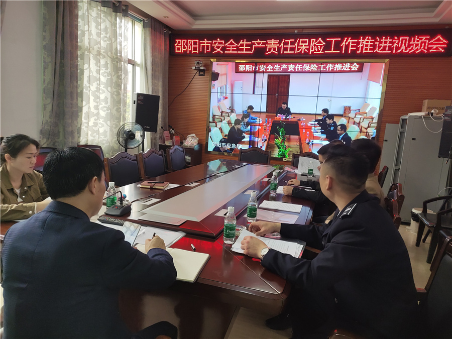 3月31日,市安全生产责任保险工作推进会以视频会议方式召开,县应急管理局局长彭盛宏、副局长朱士元以及平安财险、阳光保险、县工程机械管理所相关人员一同在局二楼视频会议室参会。
