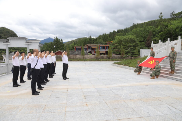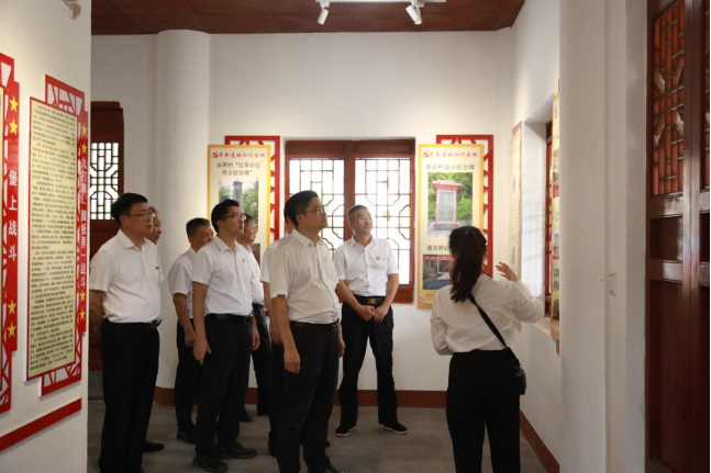 随后,余勋伟一行来到烈士陵园,怀着崇敬的心情向烈士敬献花篮,默哀鞠躬,重温入党誓词,深切缅怀革命先烈的丰功伟绩。在荣昌阁英雄纪念馆,余勋伟一行边走边看,聆听讲解员讲述城步红色故事,不时相互交流心得。