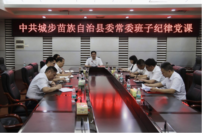 城步新闻网6月28日讯(记者 王蕾婷 刘沛含)6月28日上午,城步县委常委会会议成员开展“七一”党性教育活动。县委书记余勋伟出席活动并在县政府多媒体会议室为县委常委会组成人员讲授纪律党课,进一步推动党纪学习教育入脑入心,推动全面从严治党走深走实。