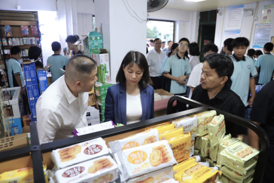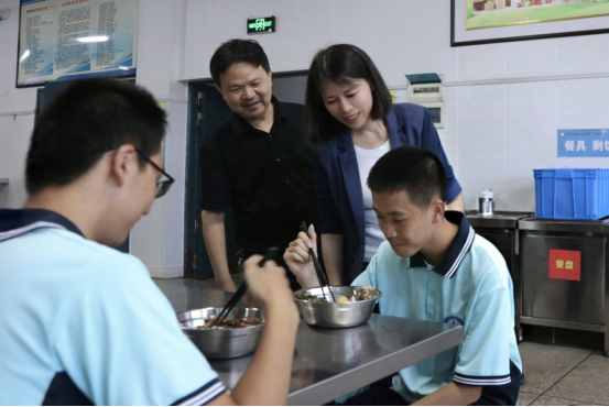 期间,王慧敏一行深入学校教学区域、学生宿舍等校园重点区域,实地了解秋季开学、校园安全等工作情况,并对防溺水、防性侵、防欺凌等工作进行了重点询问。在学校食堂,王慧敏一行仔细查看学校食堂环境卫生、食材储存和食品留样等关键环节,认真查阅日常管理台账记录,详细了解“明厨亮灶”运行及食品安全管理制度落实情况。在学生就餐时段,王慧敏还与学生亲切交流,详细了解学生对饭菜口味和食堂服务的意见,并与学生们一同用餐,现场体验供餐质量。