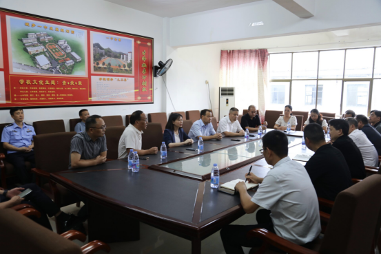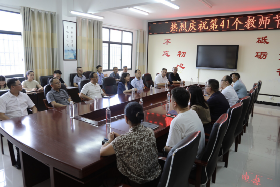 图为县委副书记、县长王慧敏一行在城步一中与教师代表座谈交流